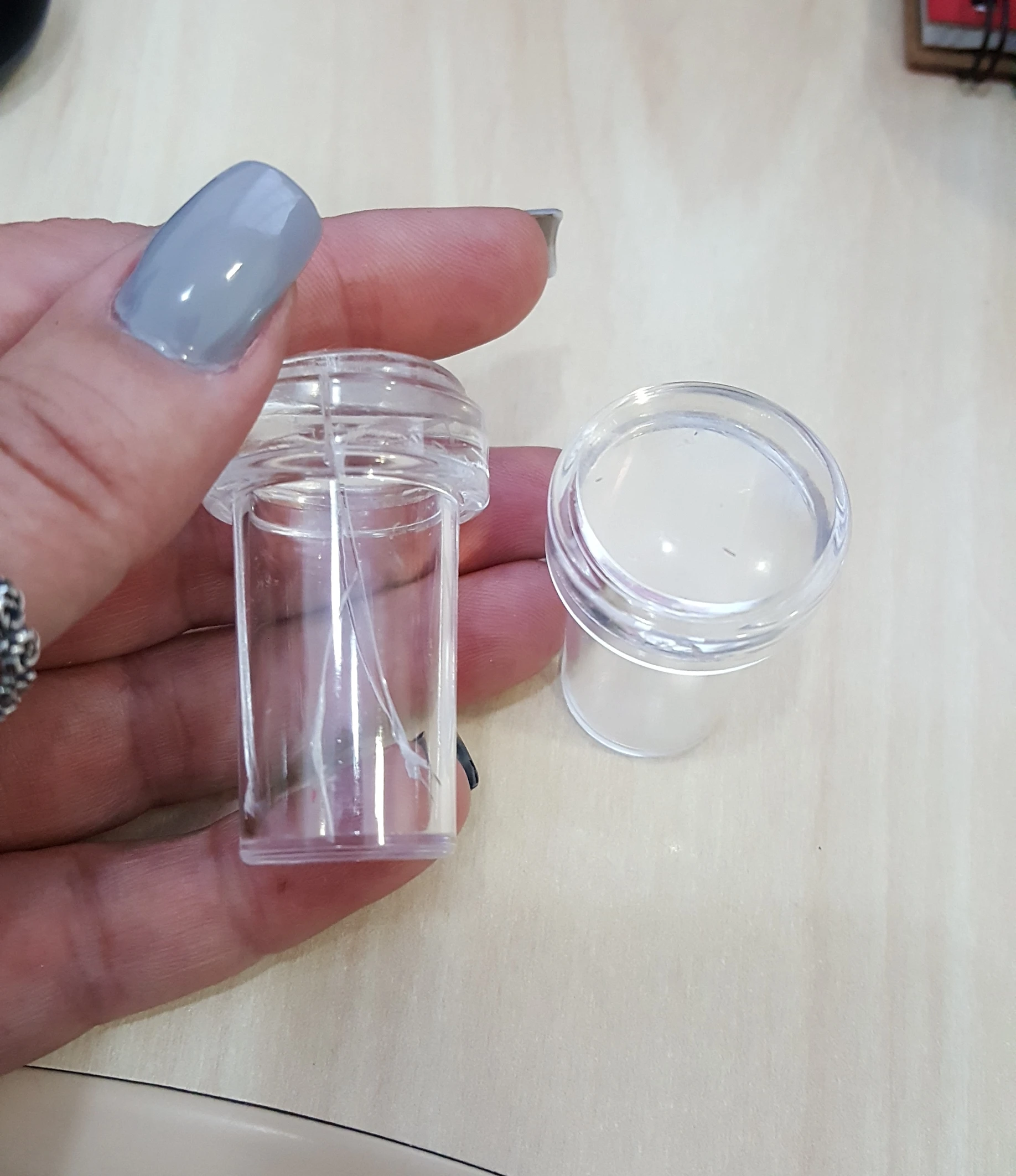 Резиновый штамп меньше, чем открытие, она зарылась внутри держателя при нанесении штампа на ноготь. Придется использовать каждый раз.