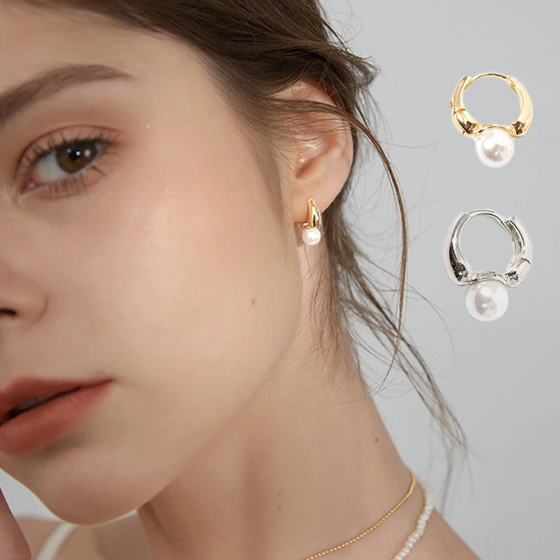Маленькие серьги-кольца для женщин, с жемчугом, в стиле ретро