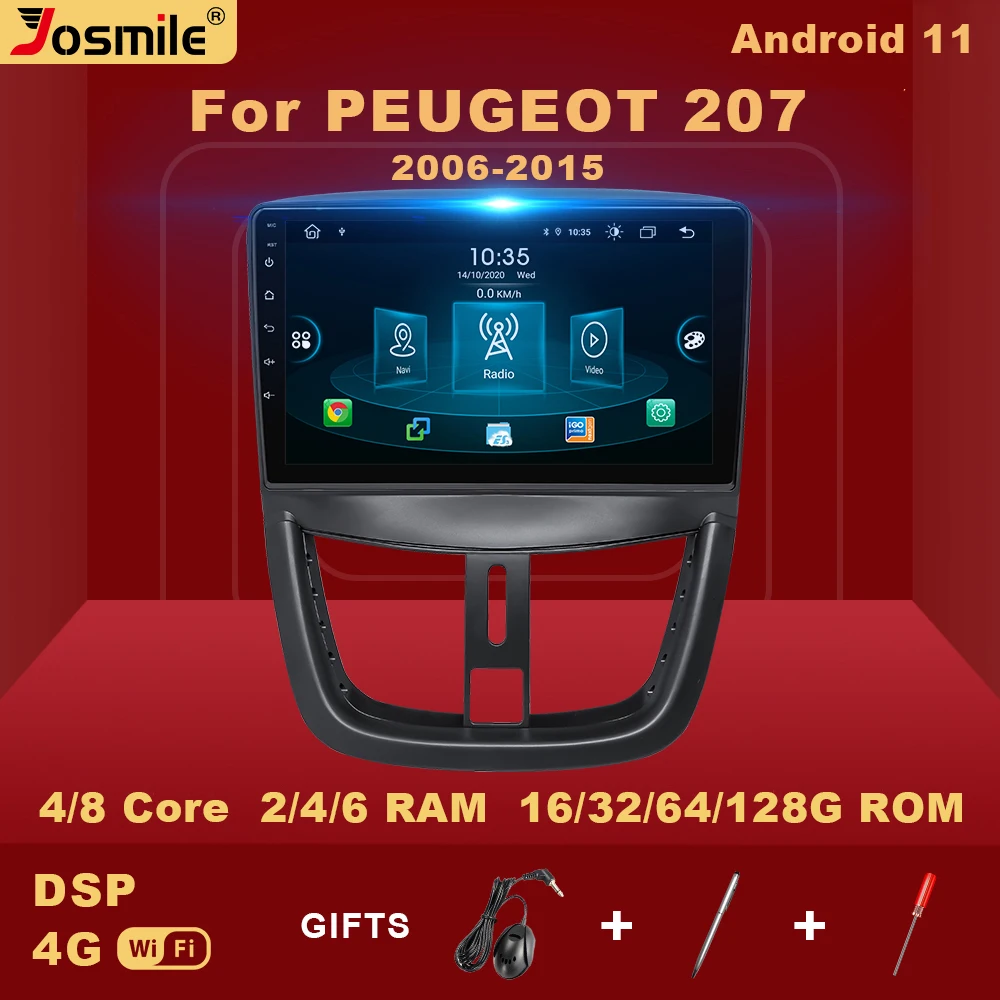 Автомагнитола 2 Din, Android 11, для PEUGEOT 207, 2006-2015, мультимедийный плеер, аудио, GPS, видео навигация, Carplay, Wi-Fi, DSP, RDS, 6GB128G