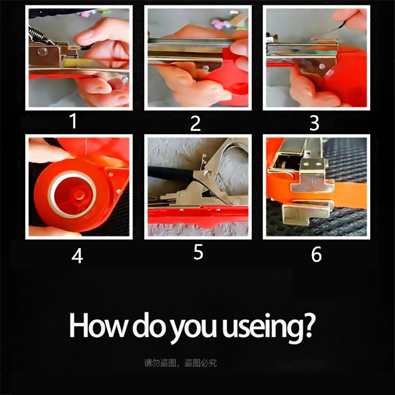 1. Удерживайте рукоятку и нажимайте с силой, когда вы услышите голос "da". Лента крепится крючком, свободная рукоятка вынимает ленту, обратите внимание, что вы не можете использовать чрезмерную силу.2. Филиал урожая должен связывать перекрытие из проволоки и других материалов и связывать их с лентой и быстро нажимать рукоятку силой.3. После отрезания клейкой ленты вы должны быстро ослабить рукоятку и сделать ненужную маленькую ленту для весны.4. Внимание: лента должна быть параллельна пазу для ногтей.Метод обслуживания:1. Если машина для завязывания лезвия не может отрезать ремень, используйте Длинные плоскогубцы для вытягивания использованного лезвия и замените новый.2. Когда машина для ручного завязывания прошитой иглы заблокирована, вы можете использовать Ниппер или небольшой отверток, чтобы получить ее. (Если 1 секция разбивается на 2 секции, мы также можем использовать один за другим, чтобы избежать блокировки.)3. Добавьте смазочное масло в каждый шарнир после того, как завязали ручную машину долгое время использования.