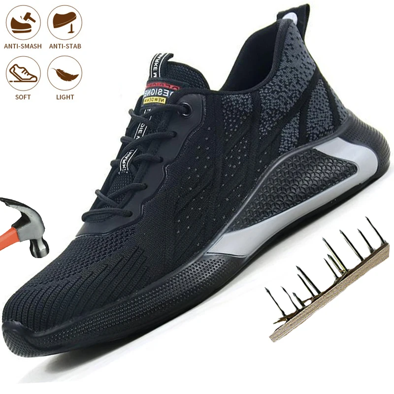 Защитные рабочие ботинки мужские, дышащие Нескользящие, со стальным носком, Нескользящие, непрокалываемые легсветильник, удобные модные кроссовки