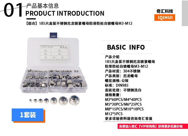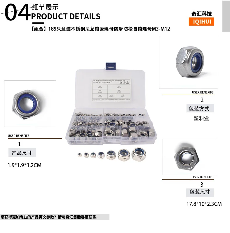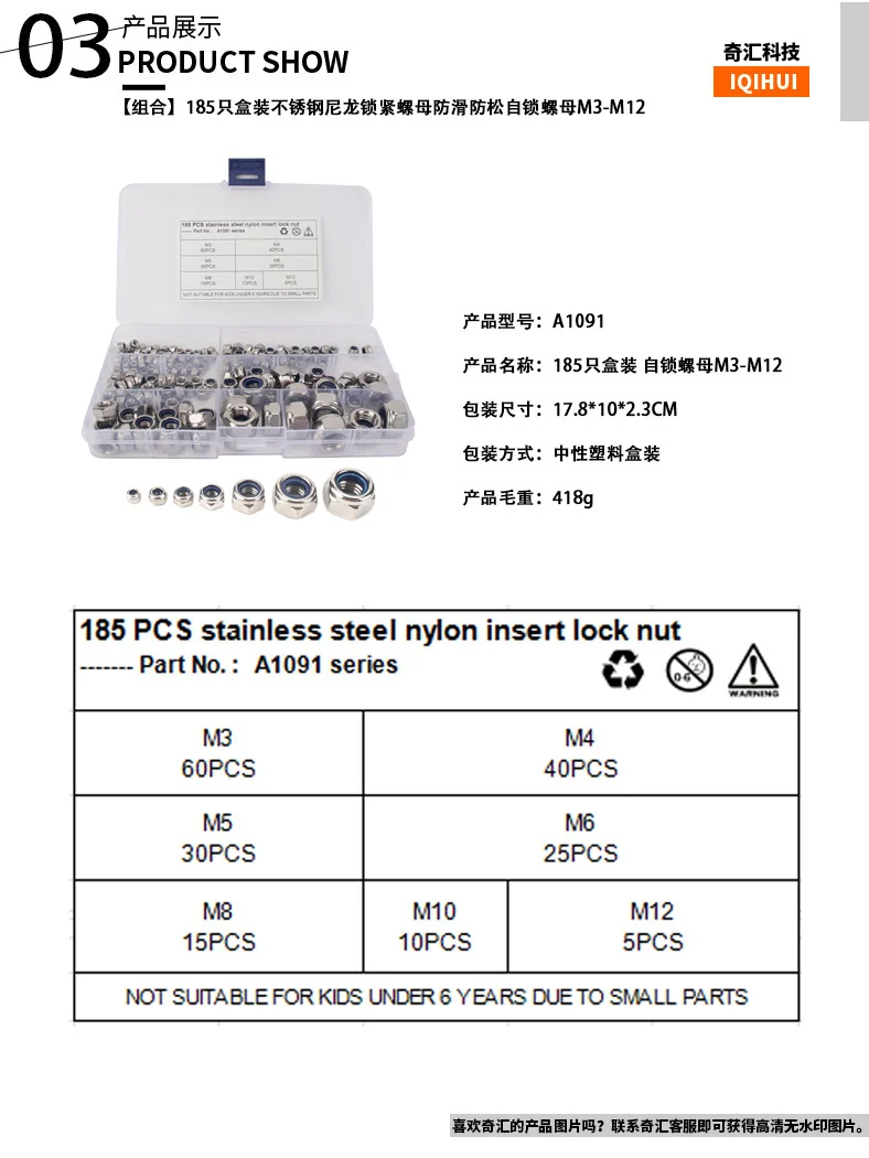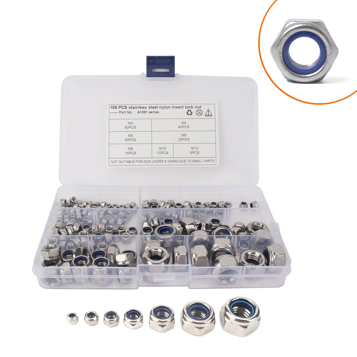 Набор метрических фиксирующих гайки из нержавеющей стали, 185 шт., ...