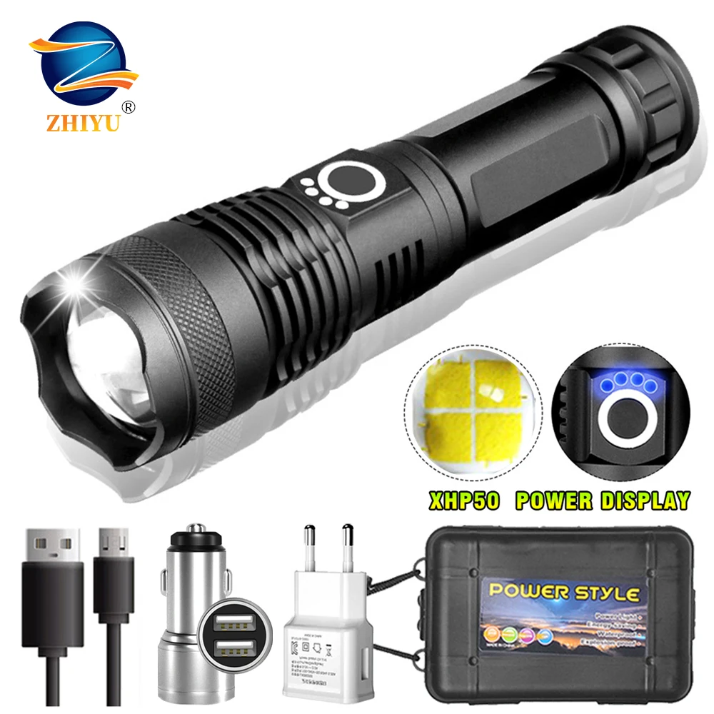Регулируемый портативный фонасветильник ZHIYU, сисветильник, перезаряжаемый фонарик, светодиодный фонарик с фокусировкой, 5 режимов, наружный фонарь для кемпинга