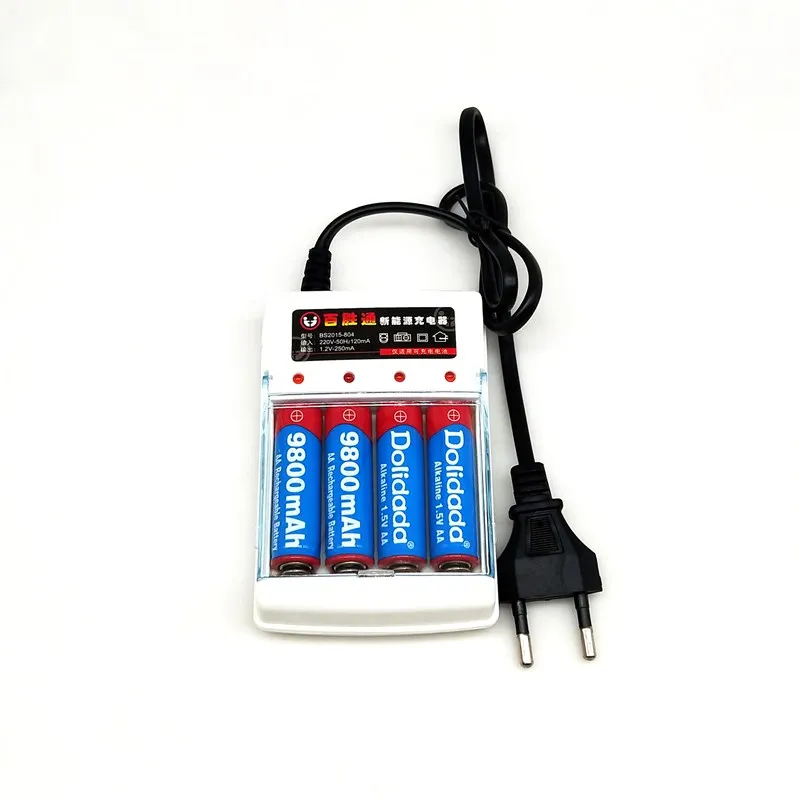 Новинка, перезаряжаемая батарея AA, 9800 мАч, 1,5 в, новая Щелочная перезаряжаемая батарея для игрушек со светодиодсветильник кой, mp3 + 1 шт., 4-элементное зарядное устройство