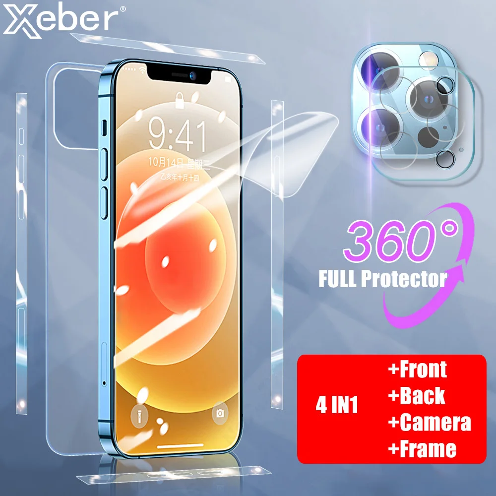 4 в 1 передняя + задняя + линза + рамка Гидрогелевая пленка для iPhone 13 11 12 Pro Max Mini X XR XS 6S 6 7 8 Plus SE полная защита экрана