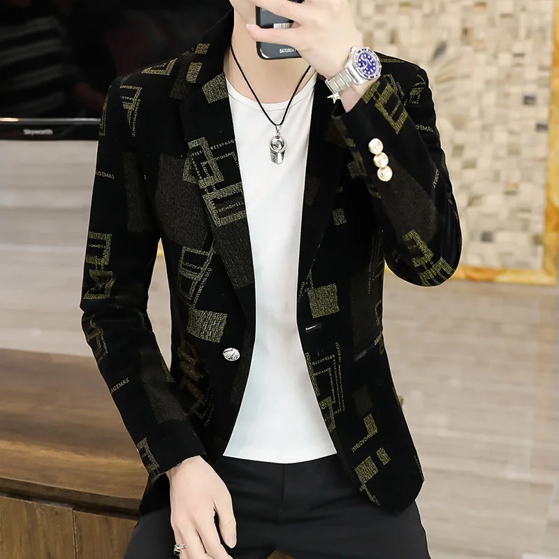 Новинка 2022, модный мужской повседневный изысканный деловой костюм в студенческом стиле с надписью, блейзеры, куртка, пальто