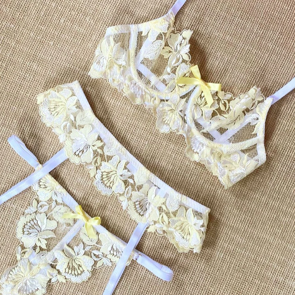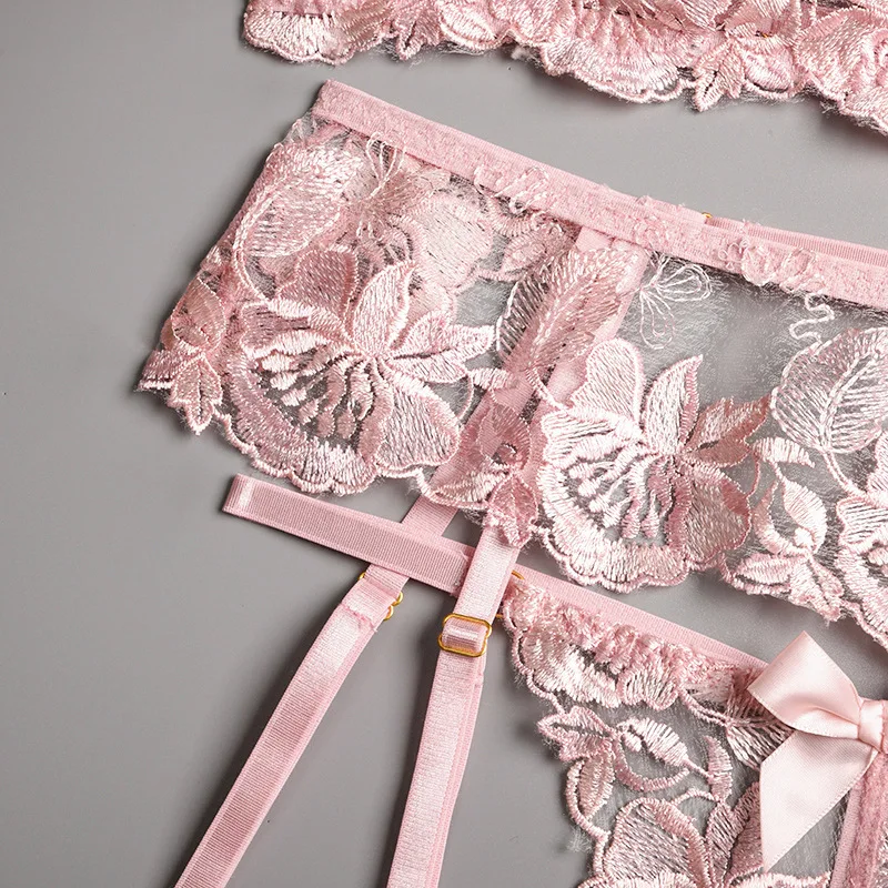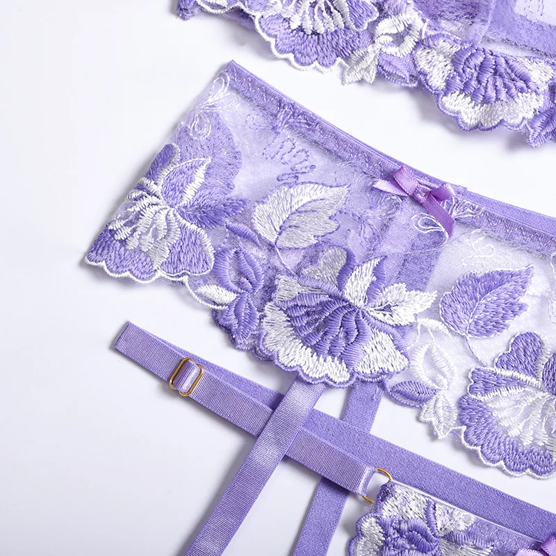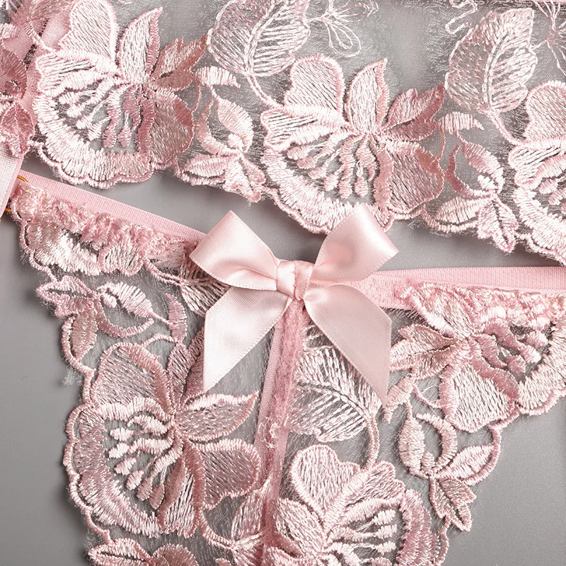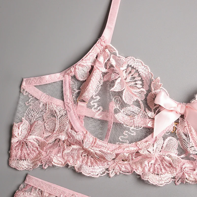 Комплект из 3 предметов, цветочное чувственное нижнее белье, женское сексуальное нижнее белье с вышивкой, бюстгальтер на косточках с подвязками, кружевной Эротический бюстгальтер и трусики, комплект