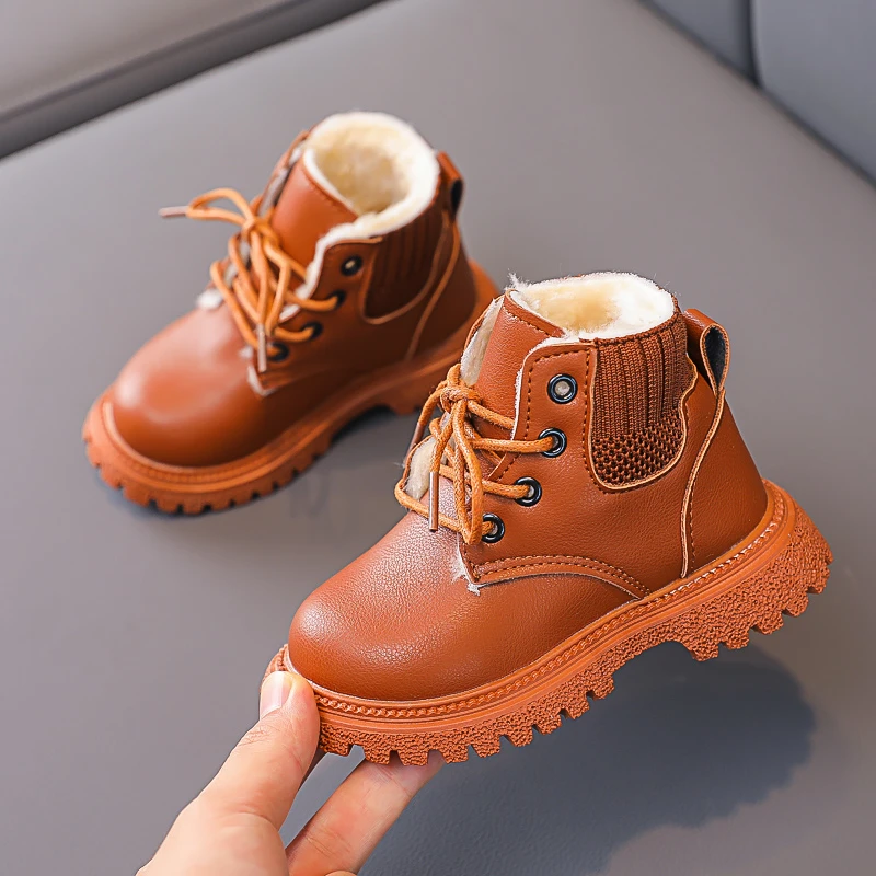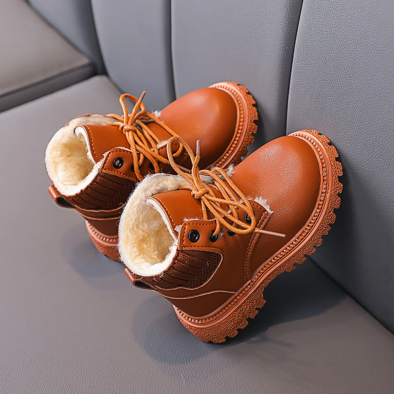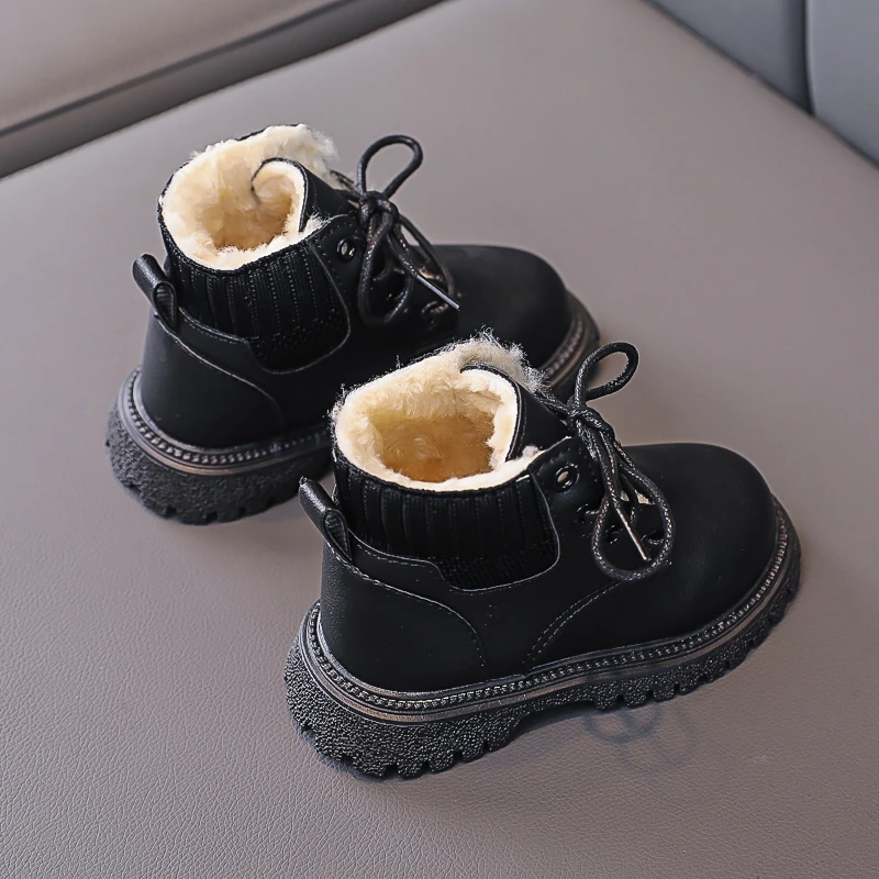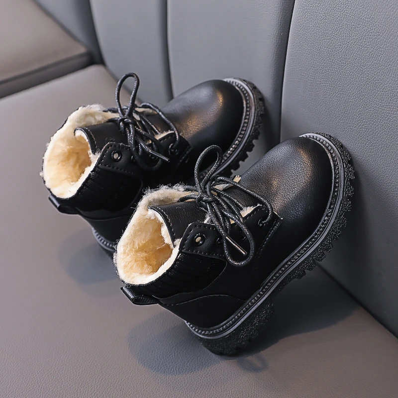 Ботинки со шнуровкой и Плюшевым Мехом для мальчиков и девочек, мягк...