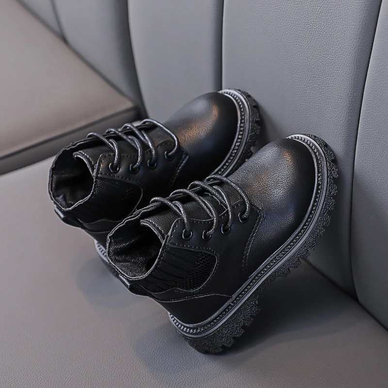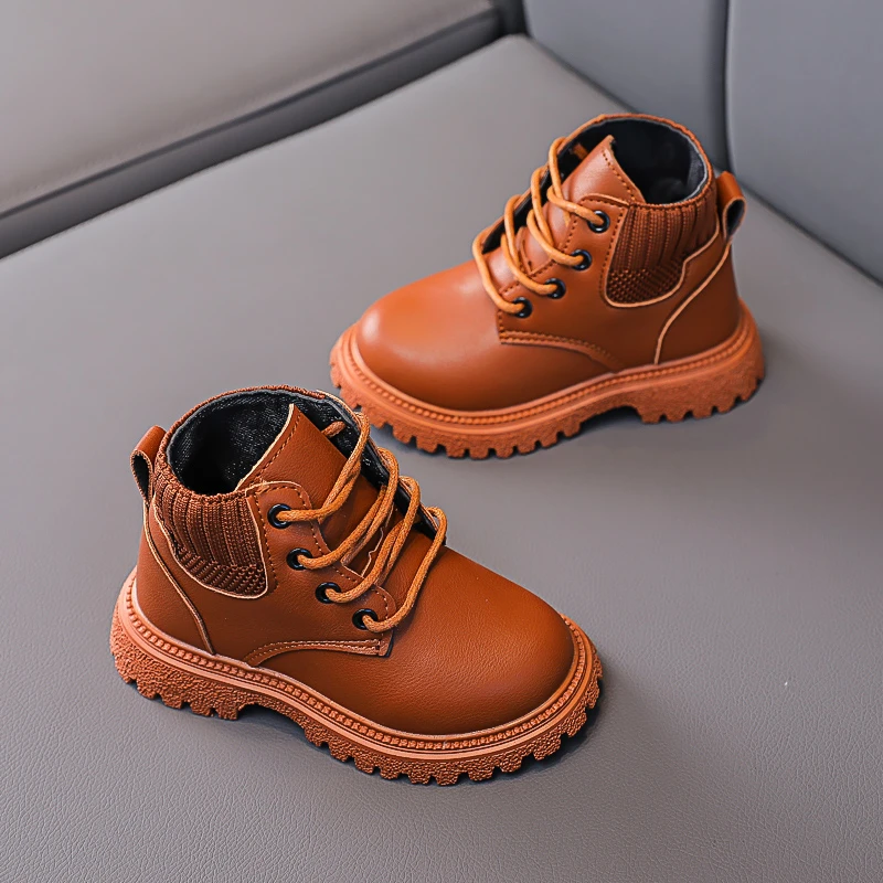 Ботинки со шнуровкой для девочек, Осень-зима 2021, короткие ботинки, кожаные ботинки с низким верхом для мальчиков, обувь для детей среднего и маленького возраста