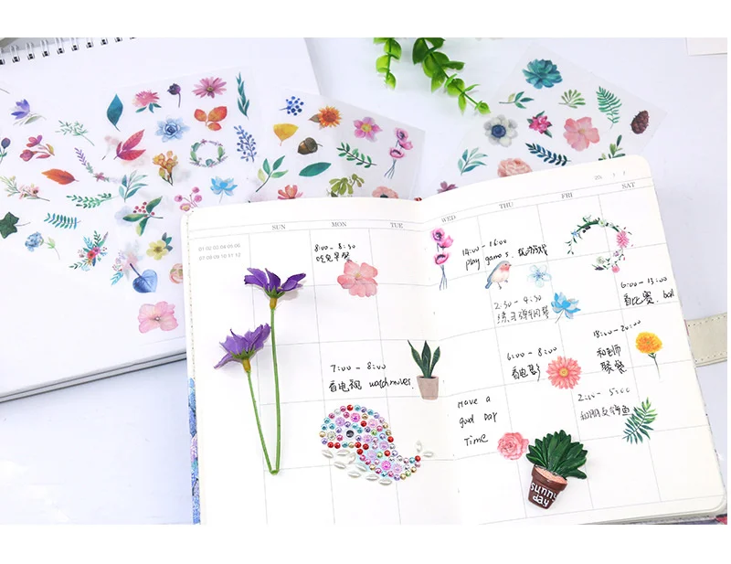 6 шт.лот милые декоративные наклейки с зелеными растениями, Стик дл...