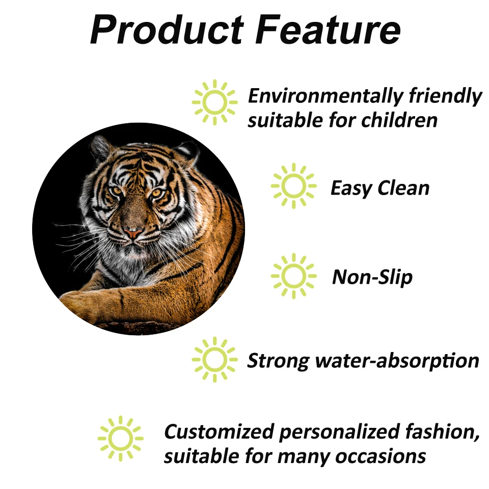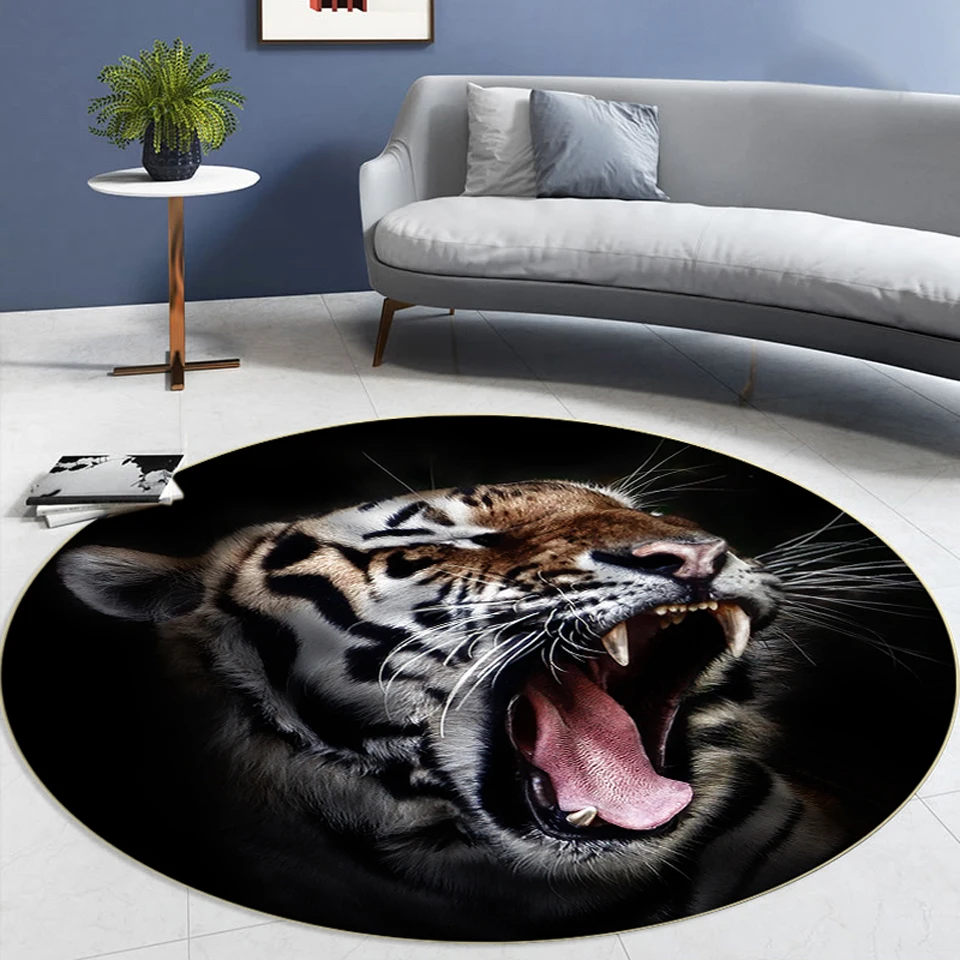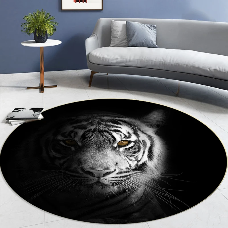 Тигровый ковер с 3D принтом животных круглый ковер украшение для гостиной черные коврики для дома ванная комната спальня прикроватный коврик нескользящий