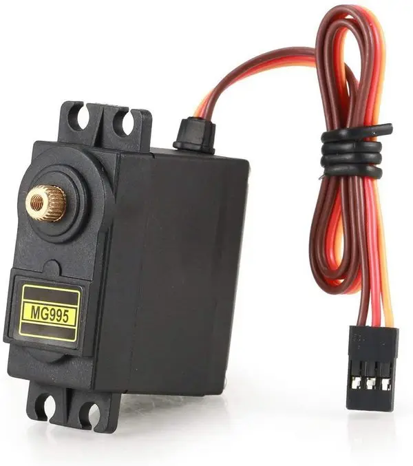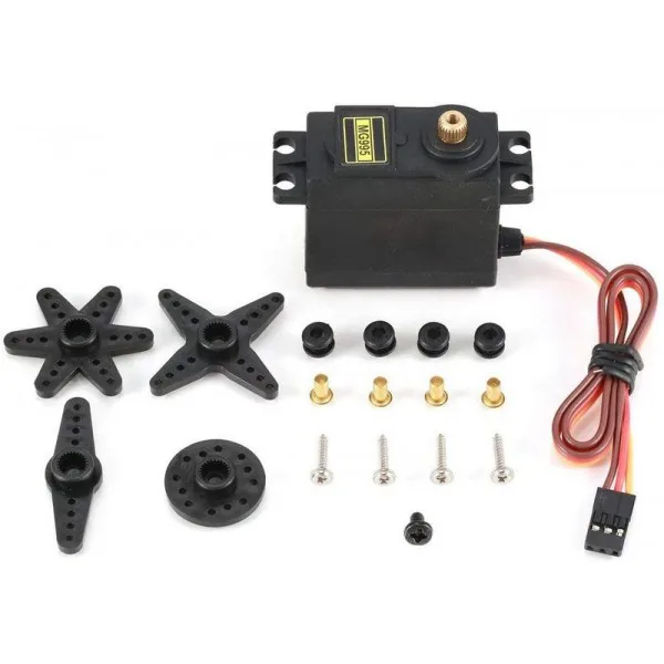 Сервопривод стандартного типоразмера TowerPro MG995 предназначен для установки на различные радиоуправляемые модели: радиоуправляемые автомодели (багги масштаба 1/8 и монстр-траки), судомодели, модели самолетов, планеров и модели вертолетов.Сервопривод TowerPro MG995 так же используется для конструирования современных роботов на Arduino и различных систем мехатроники.Благодаря высокому качеству компонентов рулевых машинок TowerPro, их можно сравнить с такими известными марками как Hitec, Futaba и Spektrum.Вращение вала 60 градусовТехнические характеристикиТип сервопривода: аналоговыйТипоразмер: стандартныйНапряжение питания (В): 4.8 ~ 6.6 ВУсилие на валу: 4.8В - 8,5 кг/см 6В - 10 кг/смСкорость: 4.8В - 0.17 сек/60° 6В - 0.13 сек/60°Размеры (мм): 40.7x16.9x42.9Шестерни редуктора: металлДлина провода (мм): 295Разъем: JR / Spektrum / DupontКомплектация1 x cервопривод TowerPro MG9951 x набор качалок и комплект специального крепежа