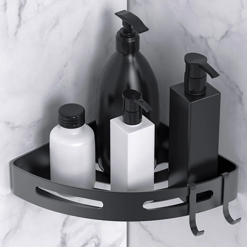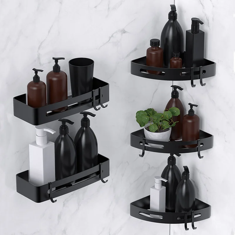 Треугольная полка для хранения полотенец и душа, черные угловые полки, Настенный алюминиевый держатель для шампуня, без сверления, полка-органайзер для ванной