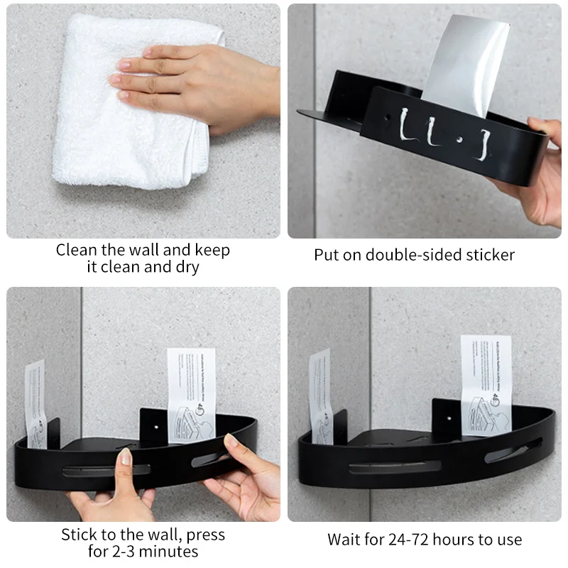 ①Эта полка изготовлена из качественного алюминиевого сплава с устойчивой к коррозии поверхностью. Подходит для влажной среды, такой как ванная комната (даже в душе) и кухня.② Предназначен для использования в душе. С множеством сливных отверстий на полке вода быстро уходит после душа.③ Этот держатель для экономии места занимает мало места, но предоставляет большое дополнительное место для хранения.