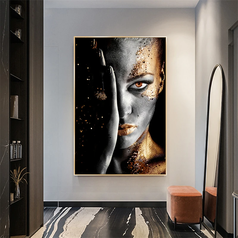 Черно-Золотая Женская Картина на холсте, Африканское искусство, скандинавские постеры и принты, настенные картины для гостиной, домашний декор