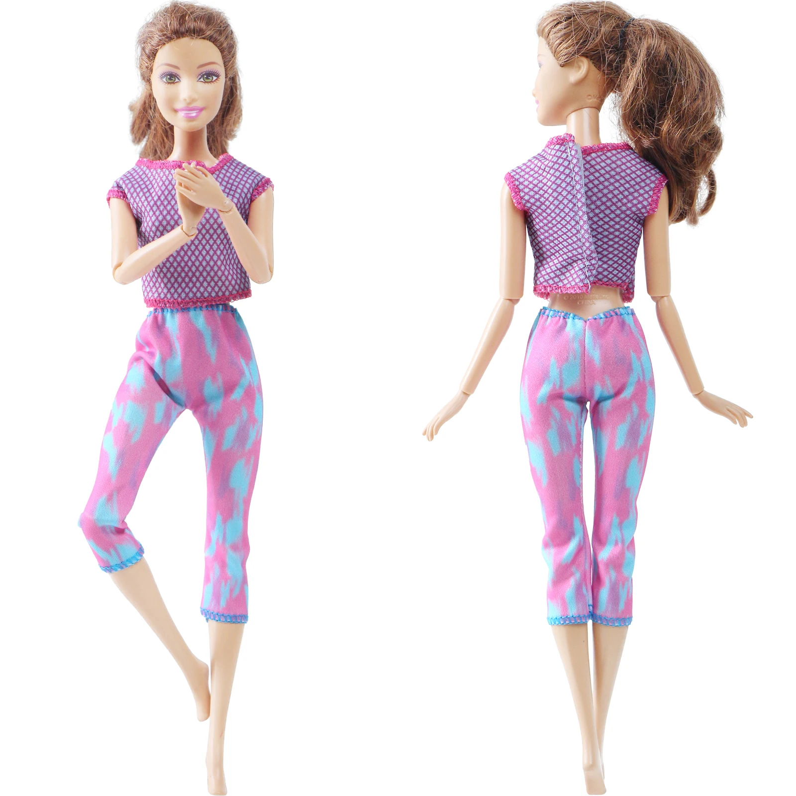 1 комплект ручной работы повседневный наряд для куклы Спортивная повседневная одежда для йоги фиолетовый клетчатый жилет брюки Одежда для девочек для Барби