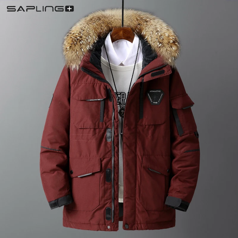 Зимняя пуховая куртка для мужчин, Модная парка с меховым воротником...