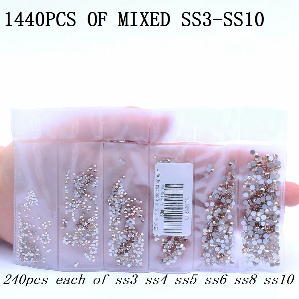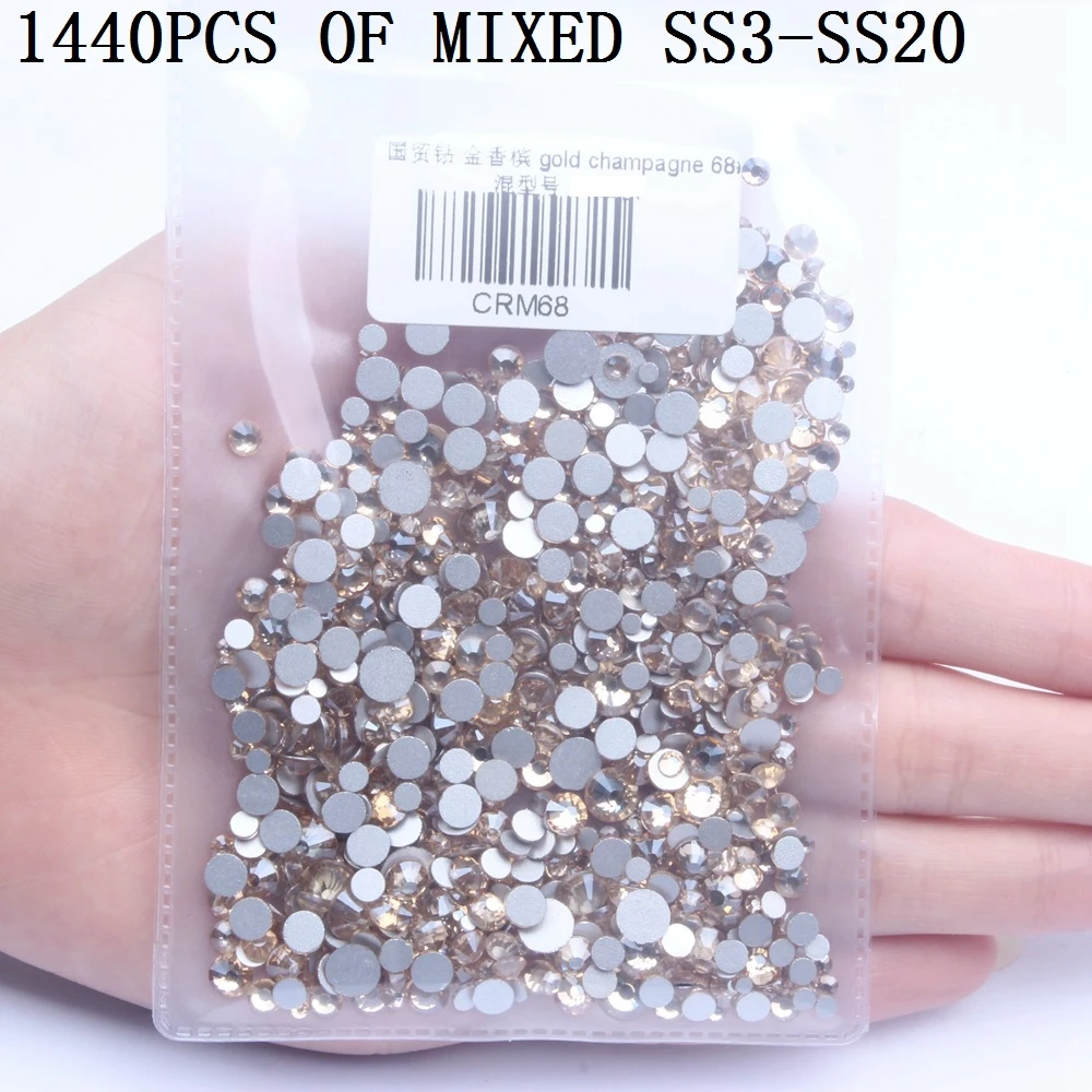 Золото Шампань SS3-SS30 и смешанные размеры Стразы для художественное оформление ногтей Flatback клей на страз Камни DIY ремесла одеждыНаименование товара: хрустальные стразы