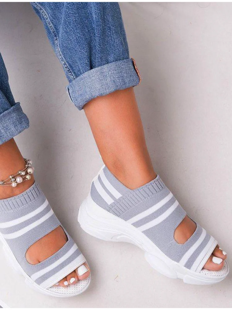 Повседневная обувь для женщин; Летние кроссовки без застежки; Женские сандалии; Коллекция 2021 года; Женская обувь из эластичной ткани; Женская обувь на платформе с открытым носком