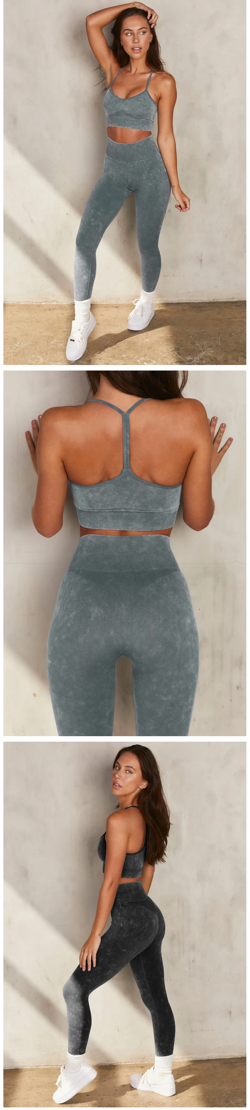 2021 песочные потертые джинсовые бесшовные вязаные костюмы для йоги...