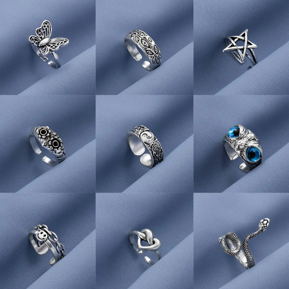 Винтажные серебряные кольца со змеей совой смайликом для мужчин и женщин, регулируемые кольца в стиле панк 2021, трендовые модные ювелирные изделия для вечеринок, подарки кольца кольцо женское кольцо мужское