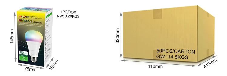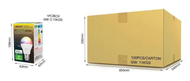 Название продукта:6 Вт RGB + CCT светодиодный светильникНомер модели:FUT014Мощность: 6 ВтНапряжение: AC100 ~ 240V 50/60HzЦветовая температура. : 2700 ~ 6500KСветовой поток: 550 лмСветоотдача: 95 лм/ВтCRI: >80Коэффициент мощности:> 0,5Тип цоколя: E26 / E27 / B22Угол луча: 220 °RF: 2,4 ГГцМощность передачи: 6 дБмРасстояние управления: 30 мРазмер: Φ57*100 мм