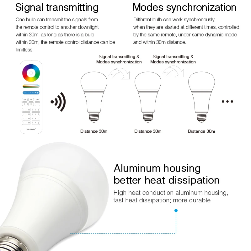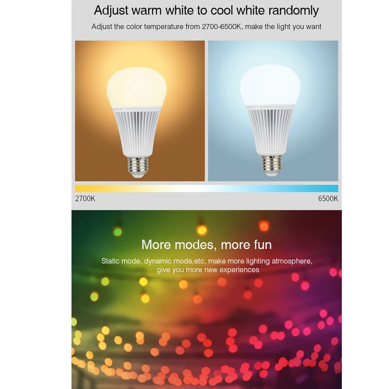 Miboxer 6 Вт 9 Вт 12 Вт E27 RGB + CCT светодиодная лампа, лампа переменного тока 110 В 220 В, умная лампа FUT014FUT012FUT105 2,4G, пульт дистанционного управления, управление через приложение