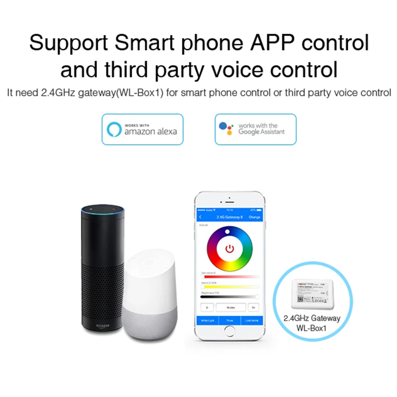 Он нуждается в 2,4 ГГц шлюз (WL-Box1) для управления смартфоном или третьей вечерние Голосовое управление