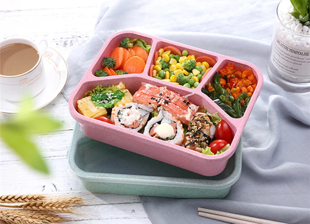 Ланч-бокс из здорового материала, 4 ячейки, бэнто-боксы из пшенично...