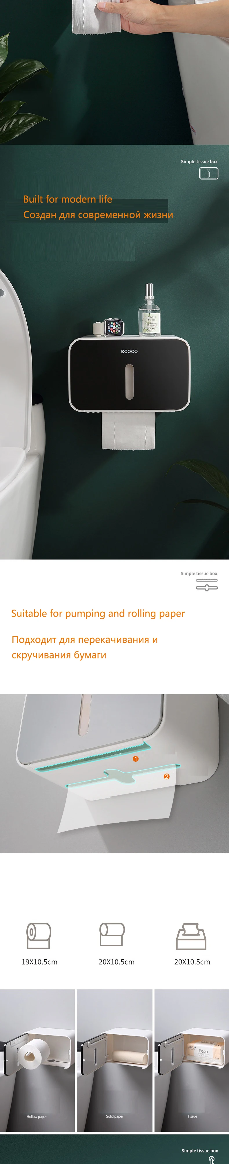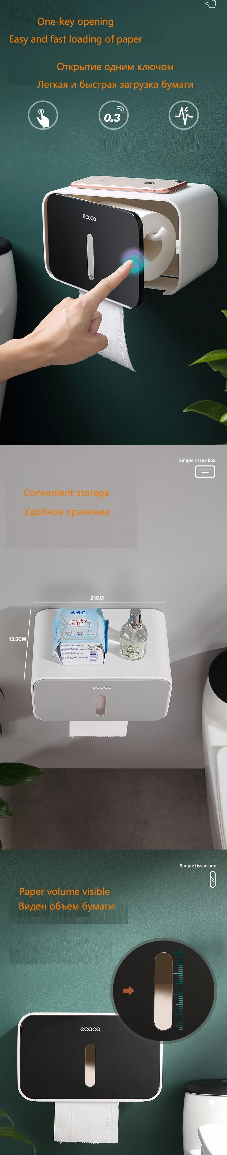 Ecoco держатель рулона унитаза, коробка туалетной бумаги водонепроницаемый, коробка для Салфеток Настенный, держатель рулона бумаги для отеля и дома