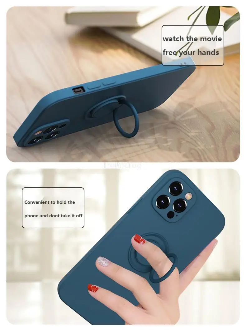 Жидкий силиконовый чехол-подставка с кольцом на палец для IPhone 13...