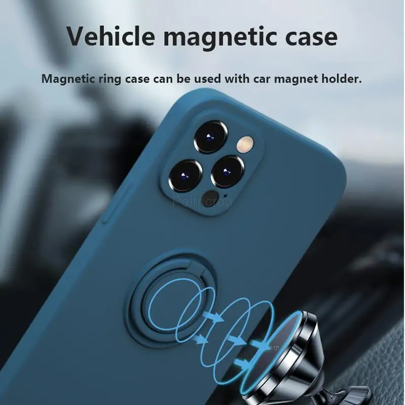 Магнитный чехол из жидкого силикона с кольцом на палец для iPhone 1...
