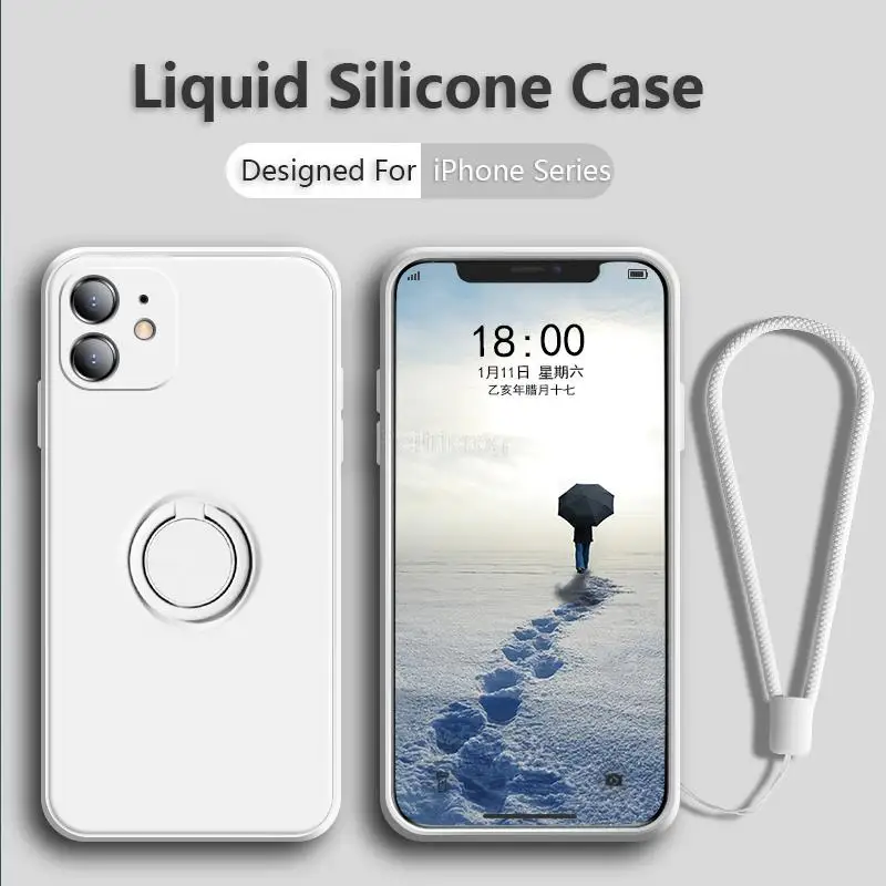 Оригинальный мягкий жидкий силиконовый чехол для iPhone 12 11 Pro Max XR X XS 8 7 6S 6 Plus SE 2020 Mini ringhholder Lanyard Magnet Cover