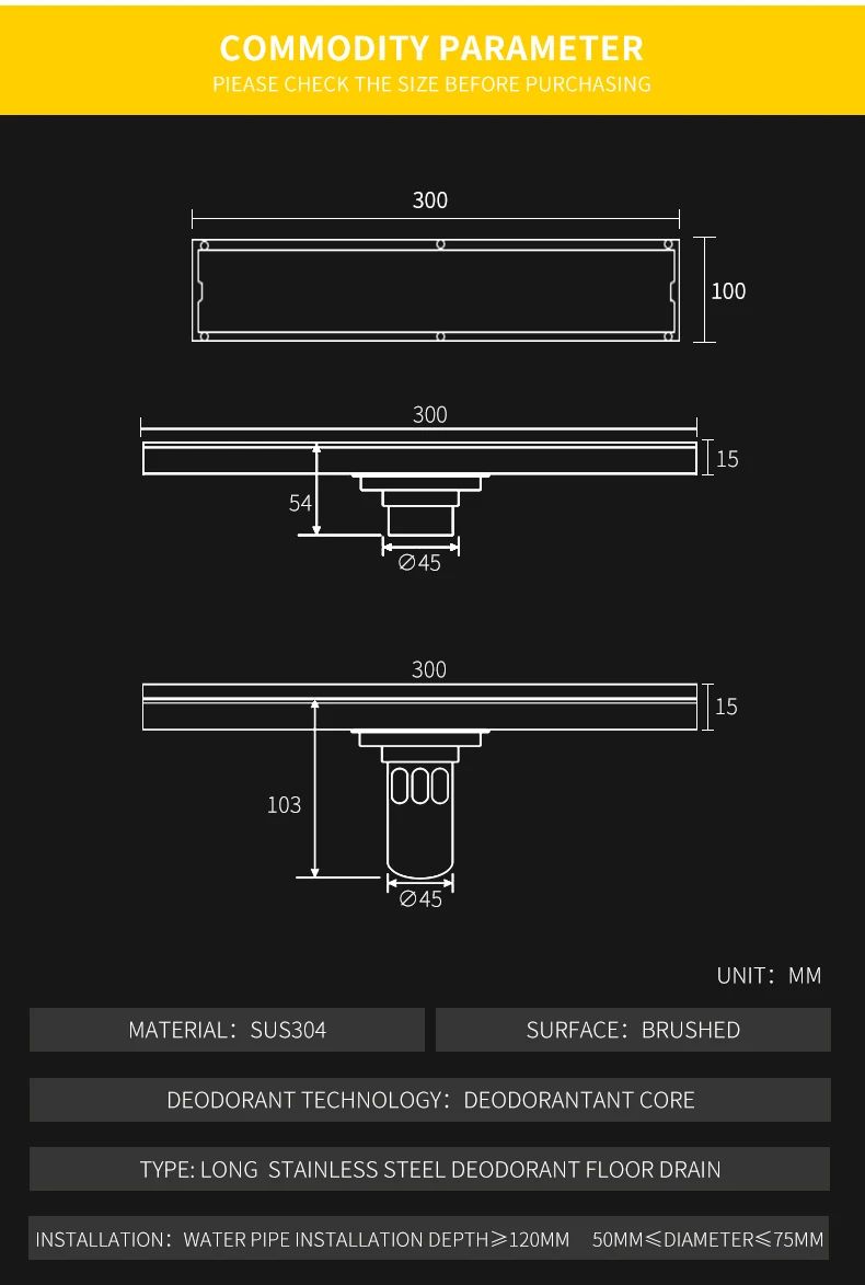 Невидимый прямоугольный напольный дренаж для ванной комнаты, линейный сток из нержавеющей стали с начесом, для душа с защитой от запаха, впитыватель волос