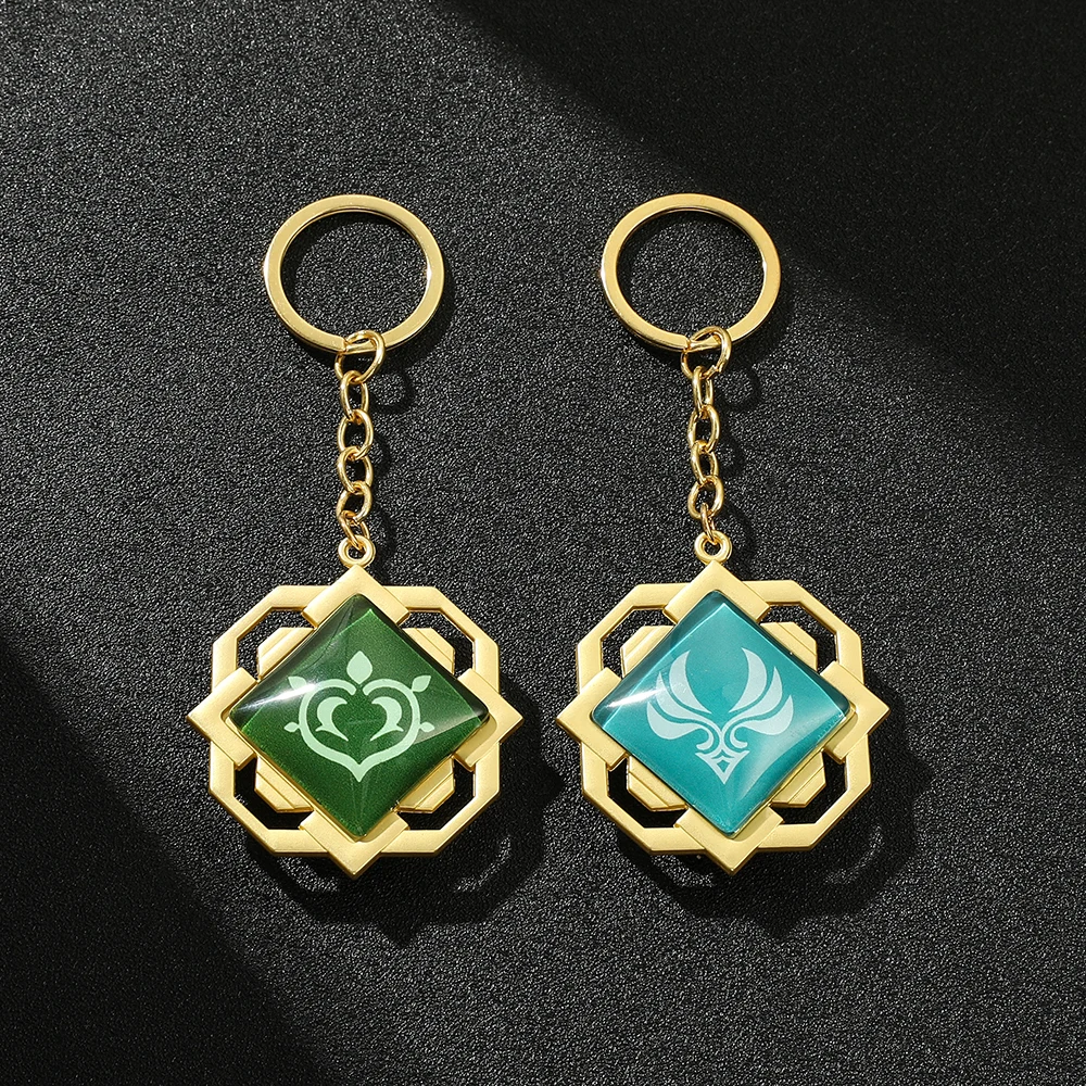 Брелок для ключей Genshin Impact, с гидро-Пиро, Dendro, Anemo, элек...