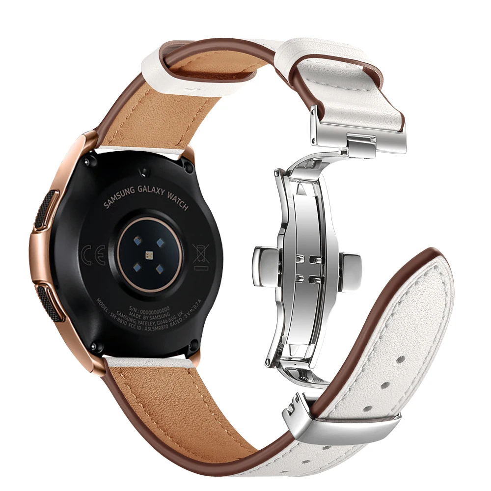 Ремешок кожаный для Samsung Galaxy Watch Active 2, браслет с застежкой-бабочкой для Galaxy Watch 3 45 мм 41 мм42 мм, 44 мм 40 мм