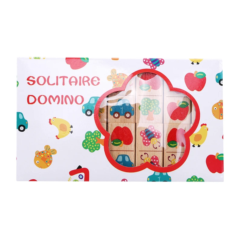 28 шт. детские деревянные блок домино игрушки из мультфильмов живот...