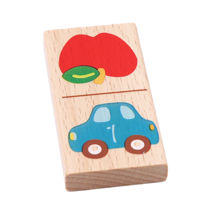 Новый стиль деревянные Мультяшные фрукты животные распознают блоки домино головоломка Монтессори для детей обучающие и образовательные головоломки игрушки
