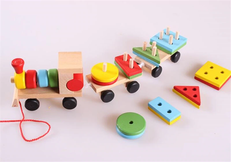 Детские игрушки деревянный поезд грузовик набор геометрических блоков сортировочная доска Монтессори Детские обучающие игрушки цвет форма совпадают сложенные головоломки