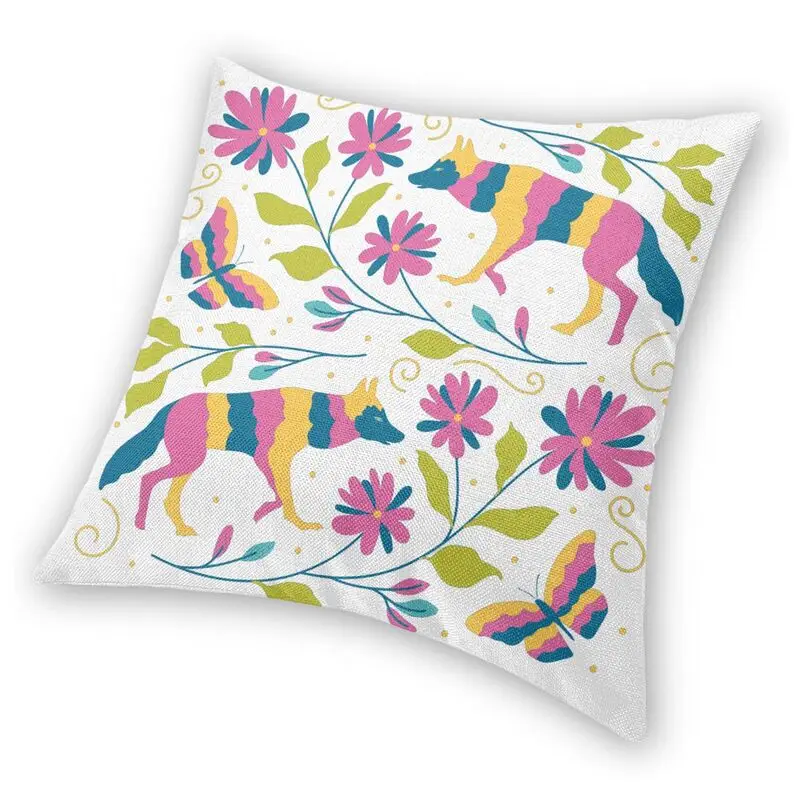Мексиканская вышивка Otomi с Wolfs, наволочка для подушки с цветочным принтом, наволочка для пола с рисунком для гостиной, искусственный чехол, украшение для дома