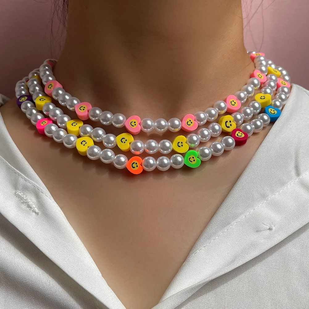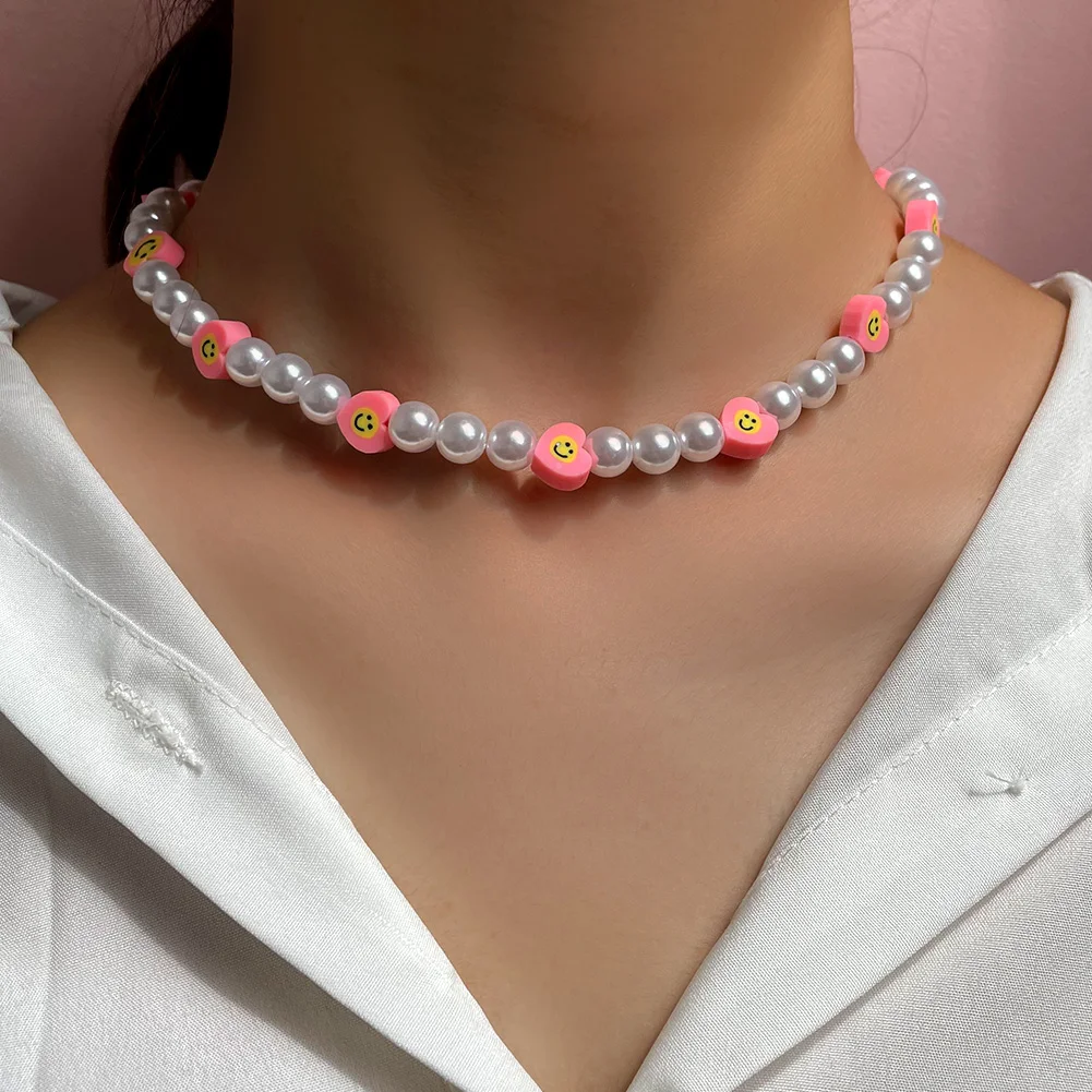 Новинка 2021, жемчужное ожерелье из бисера со смайликом для женщин,...