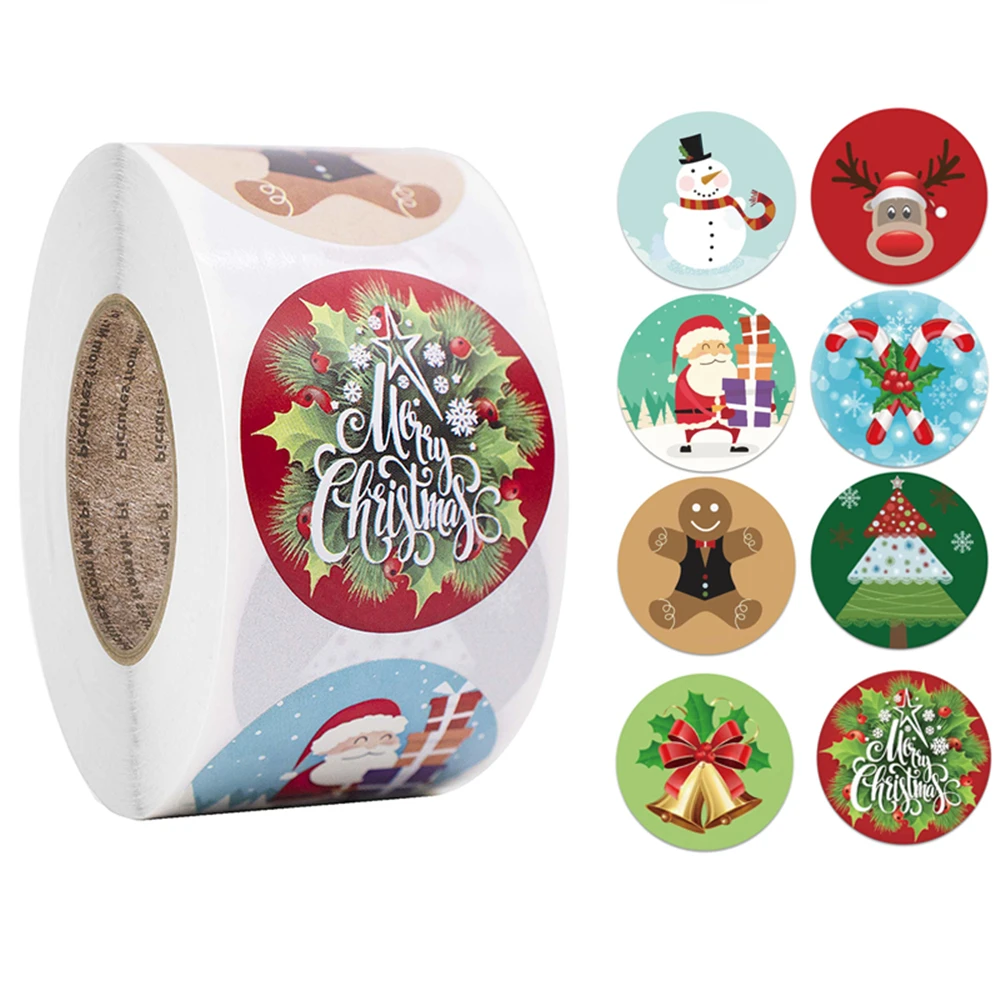 500 шт.рулон, новогодние наклейки для пакетов, 1 дюйм