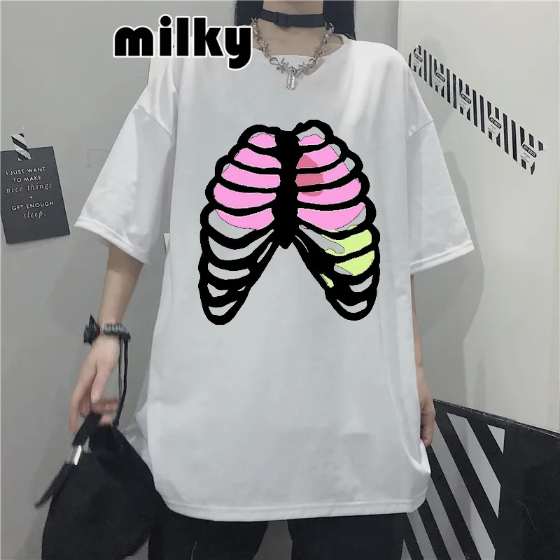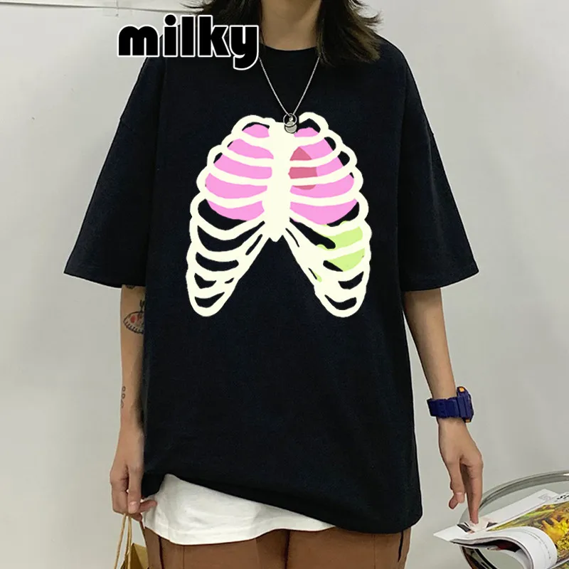 Футболка женская оверсайз с принтом черепа, уличная одежда в стиле готикапанк, повседневный Свободный Топ в стиле Харадзюку, y2k