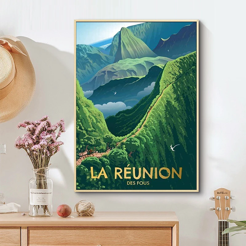 Выпускной ретро постер для путешествий на острове Франции Реюньон Картина на холсте искусство печать картина постер домашний декор