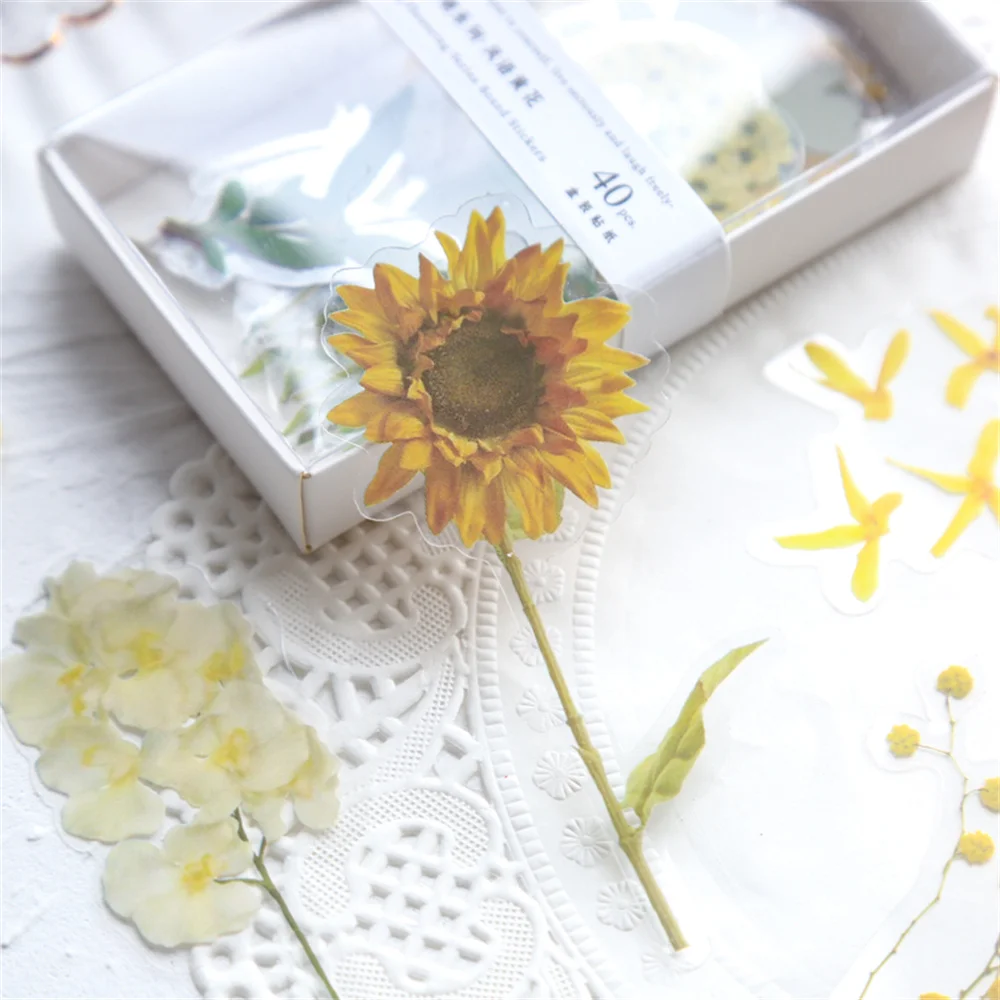 40 шт.коркор. наклейки из серии PET Flower, винтажные самоклеящиеся...