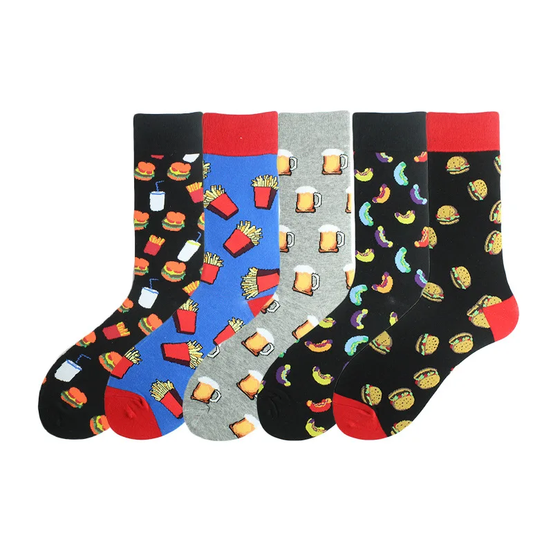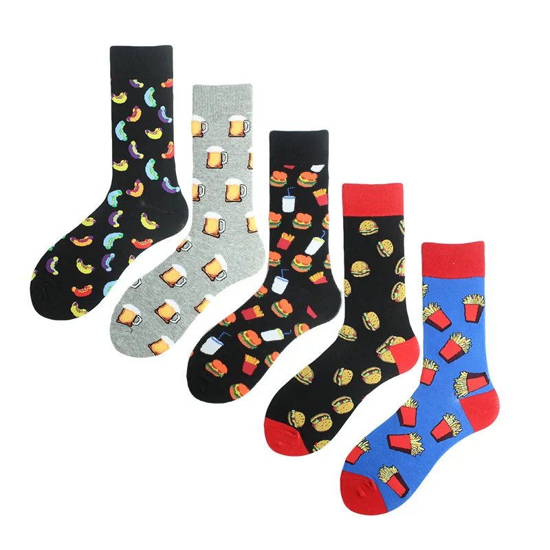 Носки мужские Смешные с 11 рисунками, хлопок, счастливые, еда, пиво, хот-дог, гамбургер, мороженое, Уличный Скейтборд для мальчиков, Харадзюку