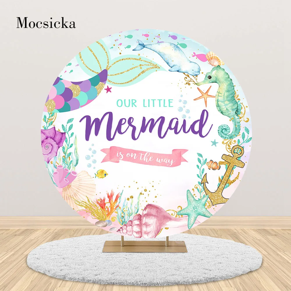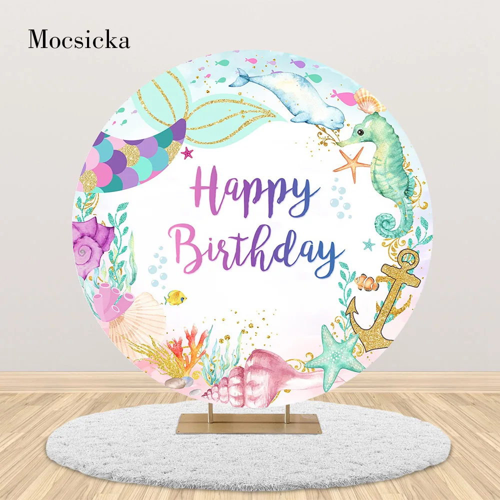 Mocsicka Круглый Круг фон для фотографии крышка подводная Русалка Принцесса День рождения фон новорожденный ребенок душ фоны
