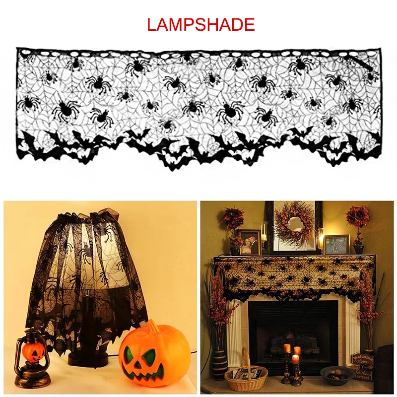 Абажур для лампы на Хэллоуин, крышка камина, украшение, Черная кружевная паутина, накидка на шарф летучей мыши, подвесные шторы для дверей, товары для Хэллоуина, 1 шт.