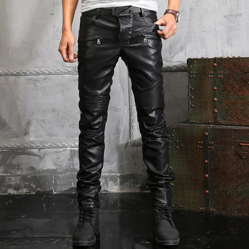 Брюки мужские мотоциклетные из экокожи, брендовые водонепроницаемые байкерские уличные штаны для верховой езды, черные, большие размеры 40