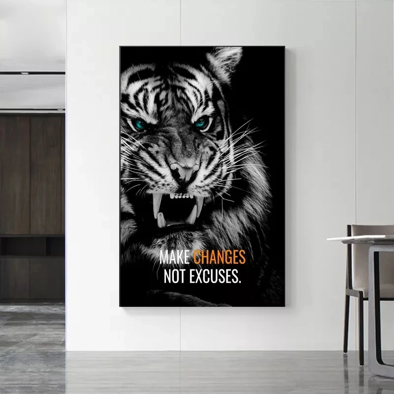 Картины на холсте с черно-белой головой тигра, современные плакаты ...